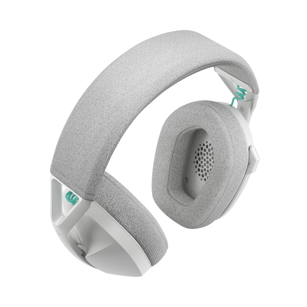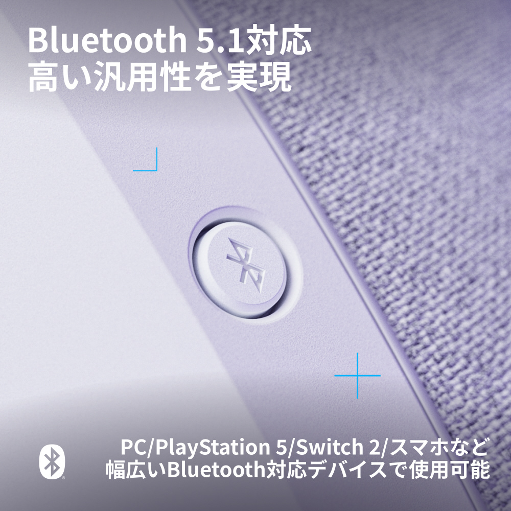 マイク付きワイヤレス ヘッドセットは、厚めのヘッドバンド、伸縮性の高いニット素材、低反発イヤーカップ採用、軽量で快適な装着感(210 g)を実現。
