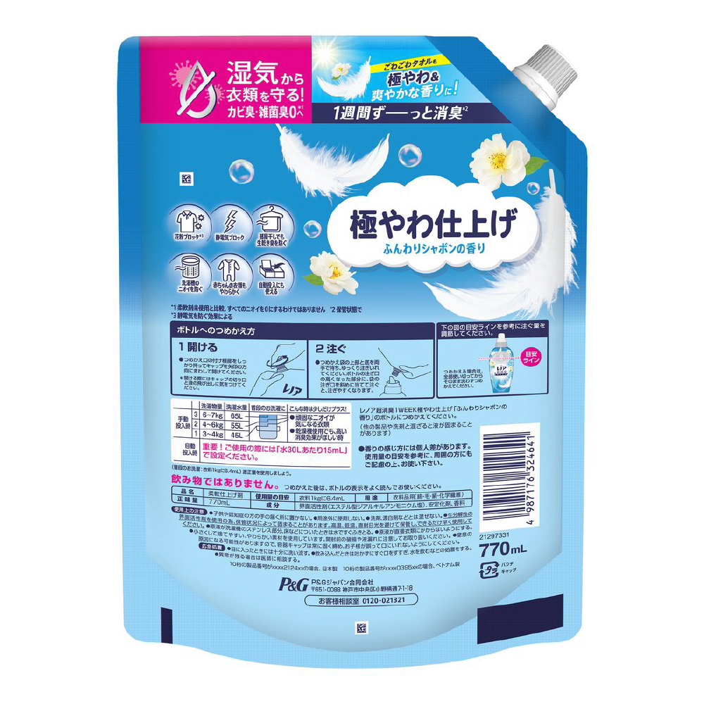 レノア超消臭1week極やわ仕上げふんわりシャボンの香り 詰替用 特大サイズ 770mL