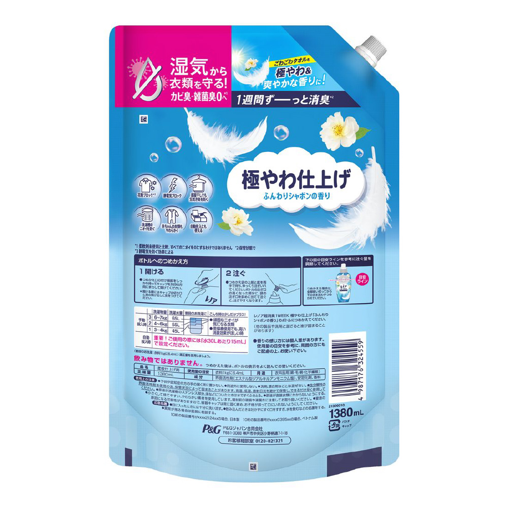 レノア超消臭1week極やわ仕上げふんわりシャボンの香り 詰替用 超特大サイズ 1380mL