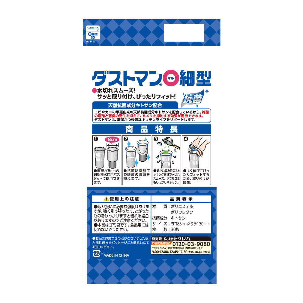 天然抗菌成分配合!細型排水口用の水切りゴミ袋です。