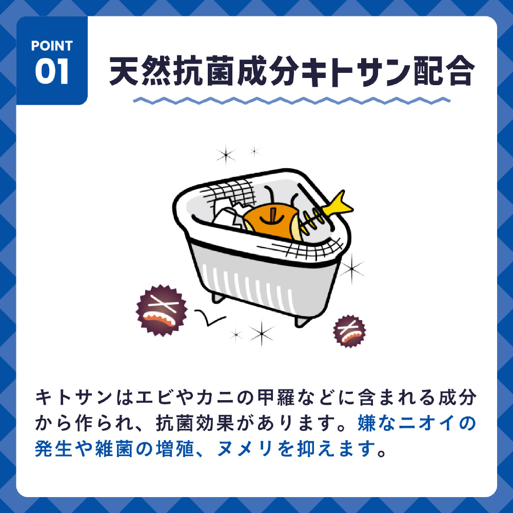 雑菌の増殖と悪臭を抑えて、ヌメリを抑制する効果が期待できる。