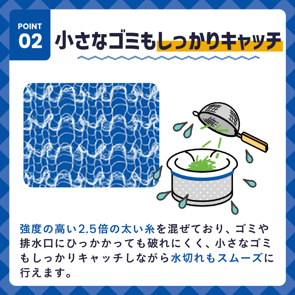小さなゴミもキャッチ、水切れもスムーズ!