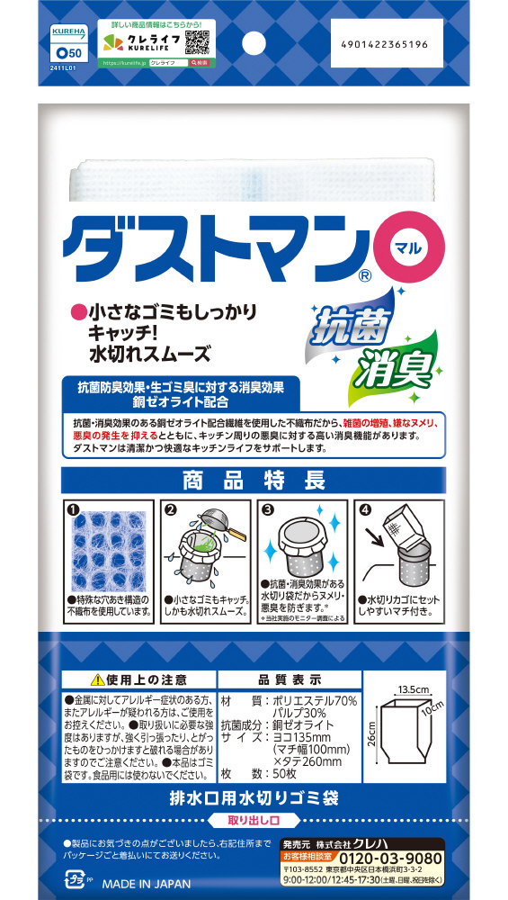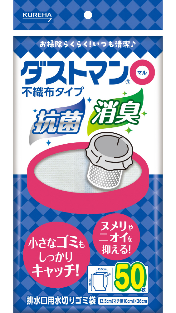 抗菌効果のある繊維を使用した深型排水口用の水切りゴミ袋です。