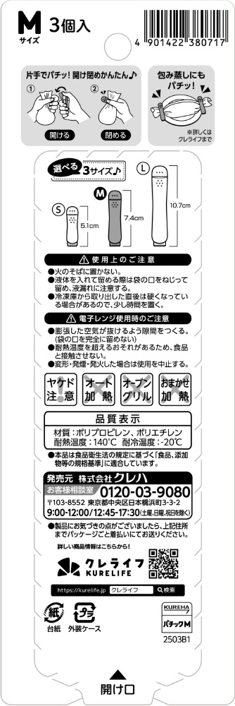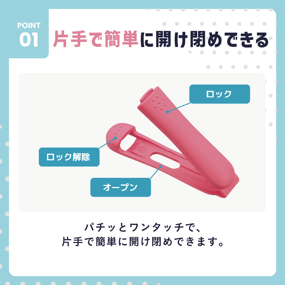 片手で簡単!パチッとワンタッチ!便利な袋用クリップ。Mサイズ3個入り