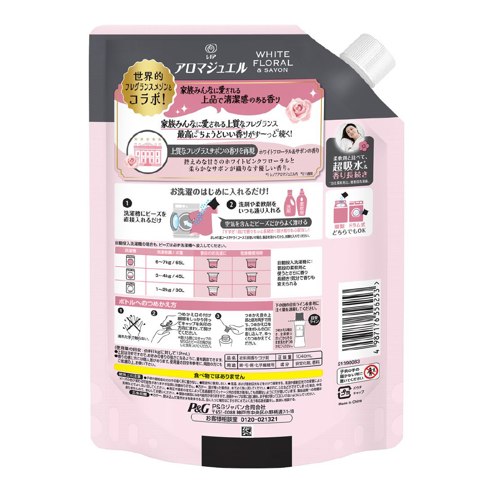 レノアアロマジュエル ホワイトフローラル&サボンの香り詰替用 特大サイズ 1040mL