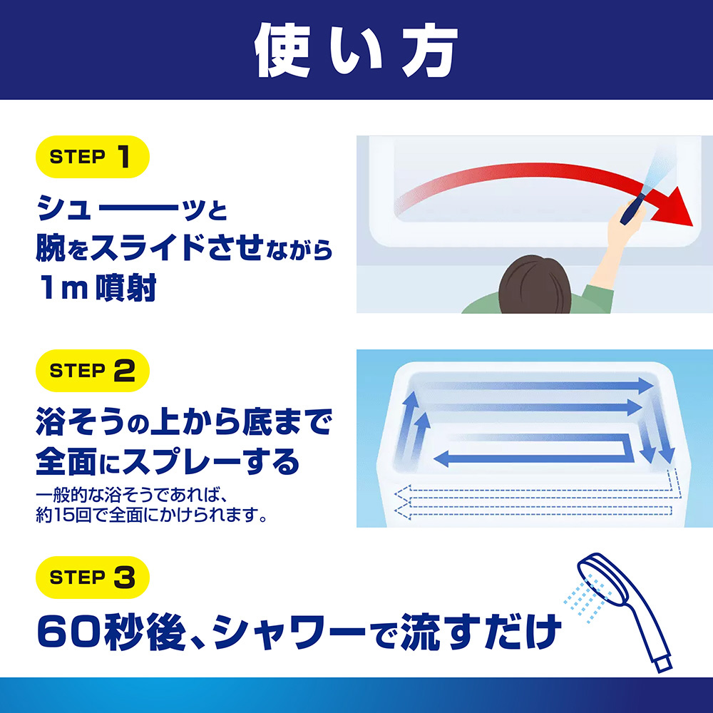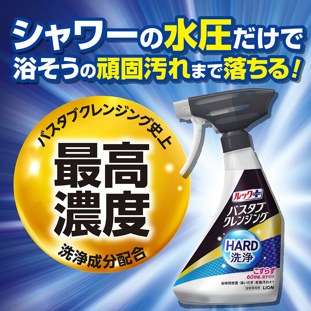 浴そうの頑固汚れまで、シャワーの水圧だけでこすらずに落とせるおふろ用洗剤。つめかえ用特大サイズ。