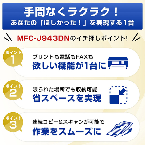 プリンター ブラザー A4インクジェット複合機 MFC-J943DN FAX 電話 子機1台 コピー プリント スキャン Wi-Fi 簡単設定 PRIVIO(プリビオ) ホワイト MFC-J943DN [子機1台 /普通紙]