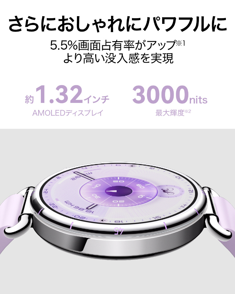 1.47インチAMOLEDディスプレイは、画面領域が約5.5%拡大し、より高い没入感を実現。