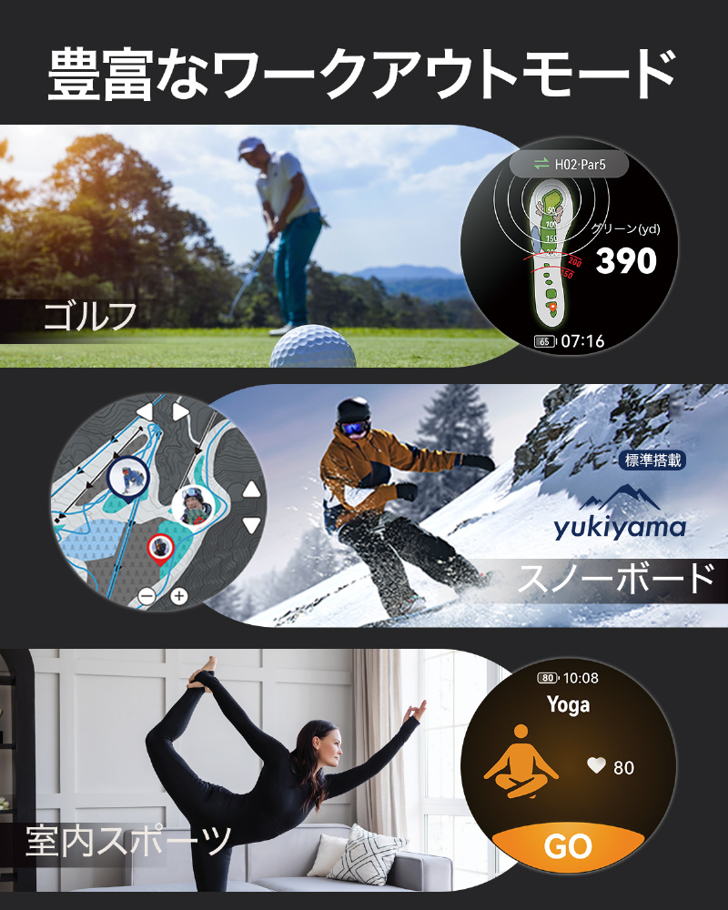 ・ランニング:大規模なオフラインマップダウンロードに対応し、屋外ランニングモードでは最大40時間のランニングが可能。
