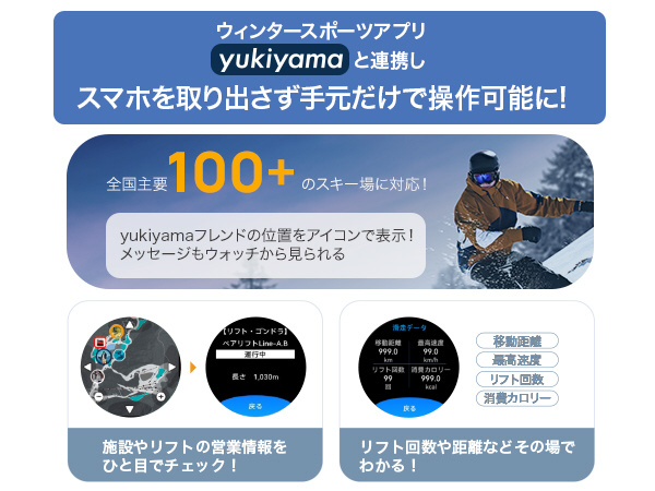 ・スキー:平均速度から距離、タイムまでのあらゆる指標を記録。