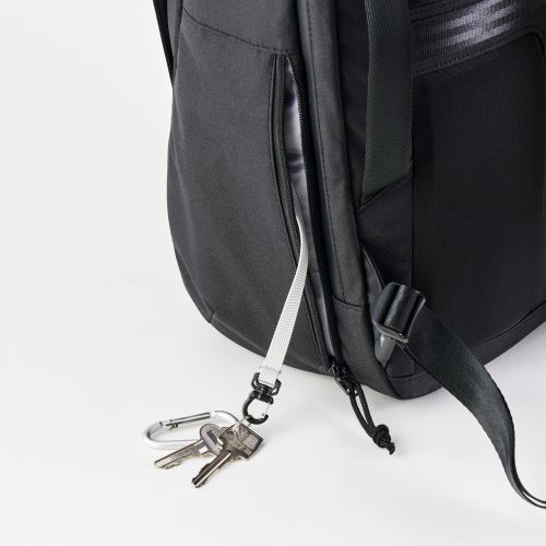 2つのフロントポケットおよびサイドポケットの内部にループがあり、キーリールやパスケースなどを好みの位置に取り付けられます。