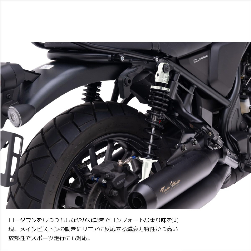 CL250/E-Clutch用の、エフェックスのローダウンリアショック。約25mmダウンのローダウン量で、足つきを改善。