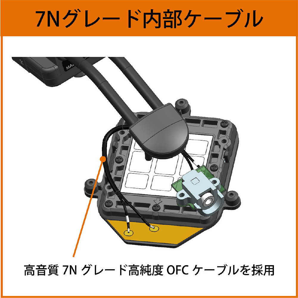 ●上位機種と同じ7Nグレードの高純度OFCケーブルを内部配線材に採用
