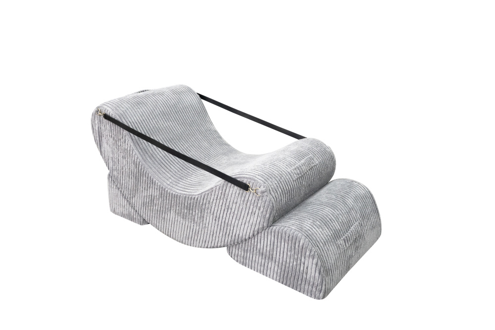 不思議な形をしたウレタンソファとオットマンのセット。人をダメにするゆったり癒しのソファです。