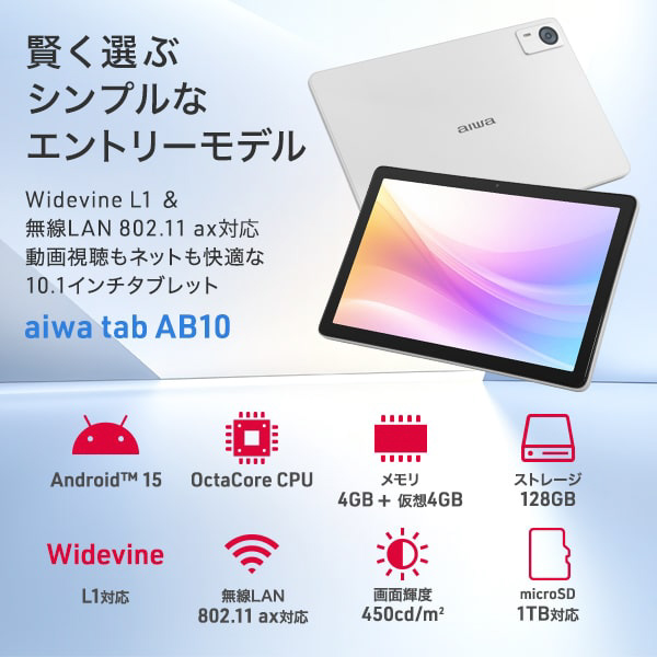 JA5-TBA1012 Androidタブレット aiwa tab AB10 シルバー [10.1型 /Wi-Fiモデル /ストレージ:128GB]