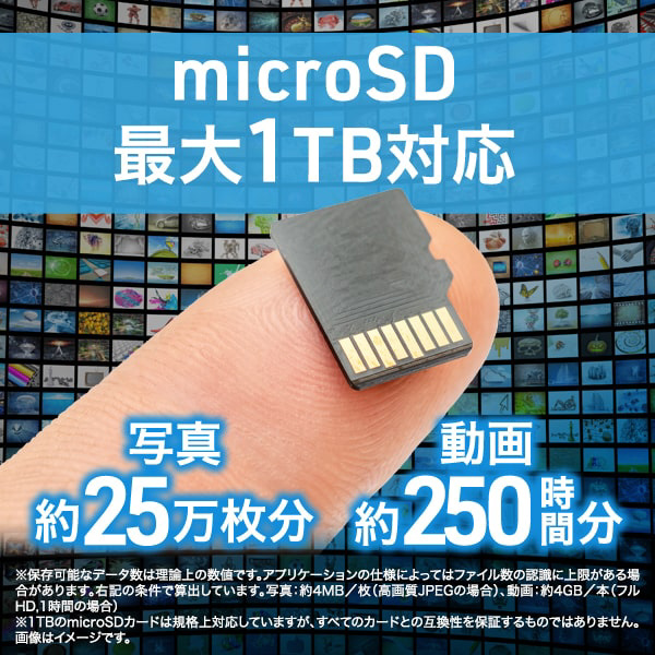 [対応メディア]microSDカード(SDHC、SDXC含む 最大1TBまで対応)