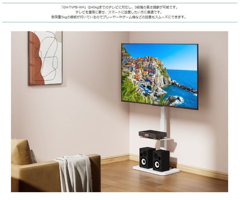 大型テレビ用 テレビスタンド ホワイト GH-TVFB-WH
