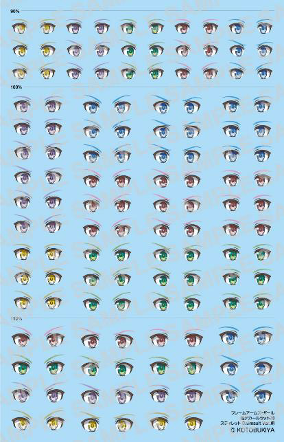 ■スティレット Swimsuit Ver. 用と共に、本商品オリジナルカラー版もセットし、90%サイズおよび110%サイズの瞳デカールもご用意しました。