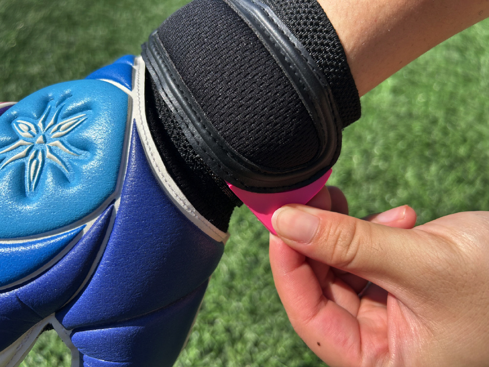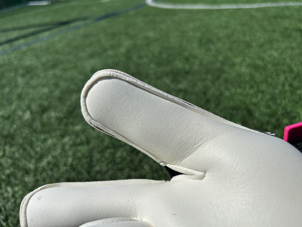 キーパーグローブの脱着時にパームを傷つけないためのTタブ。