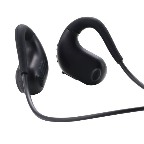 耳をふさがないオープン設計で、周囲の音も聞こえるオープンイヤー型ネックバンド式のBluetoothヘッドセットです。