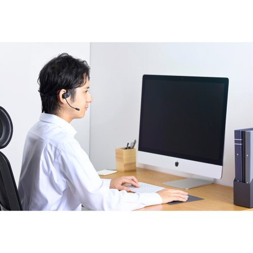 長時間のWeb会議やビデオ通話でも耳が痛くなりにくい、オープンイヤー型ネックバンド式のBluetooth(R)ヘッドセットです。耳を塞がないため開放感があり、快適な装着感が持続します。Bluetooth接続によりワイヤレス通話が可能で、パソコンやスマートフォンから離れても通話が途切れず快適に使えます。