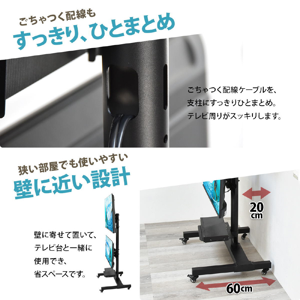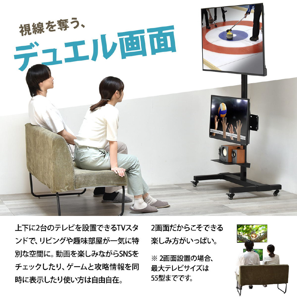 ディスプレイを上下2面、両面で設置できる本体耐荷重60kgのテレビスタンド(ディスプレイ1台のみの取付けは32〜65型ま