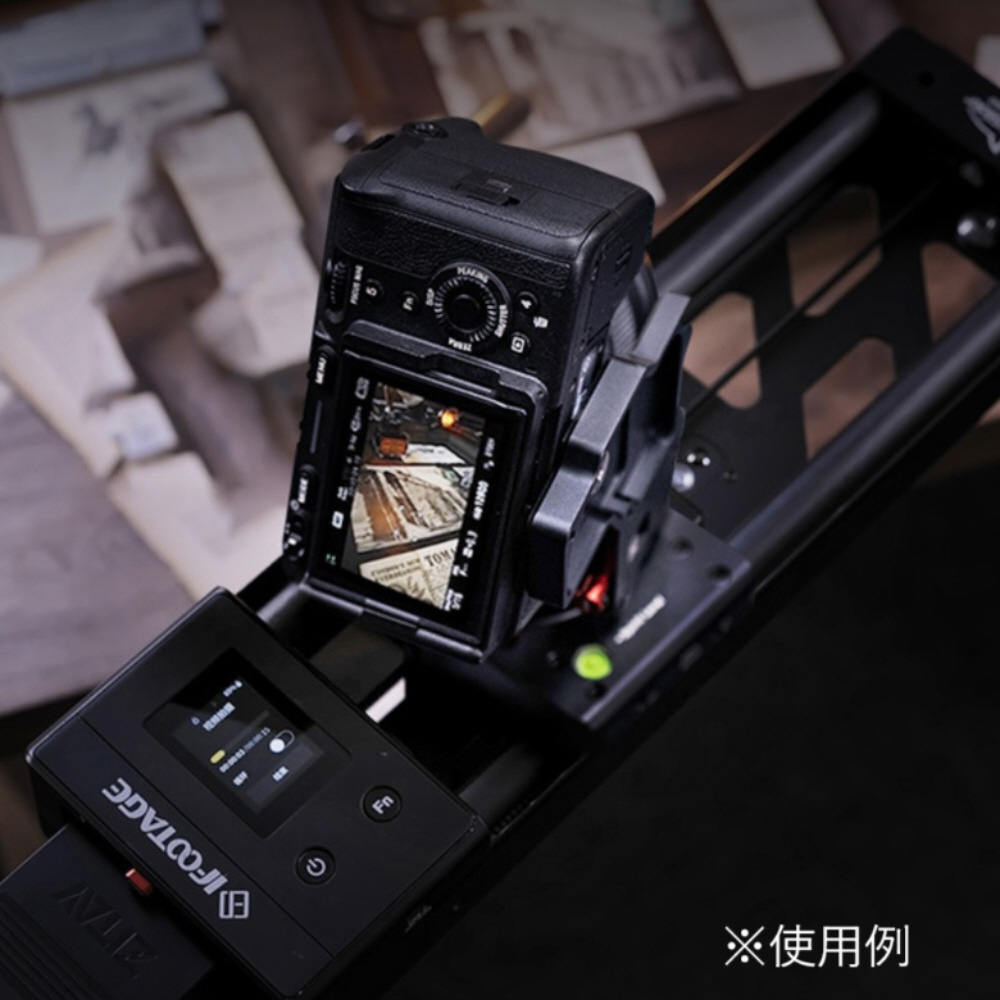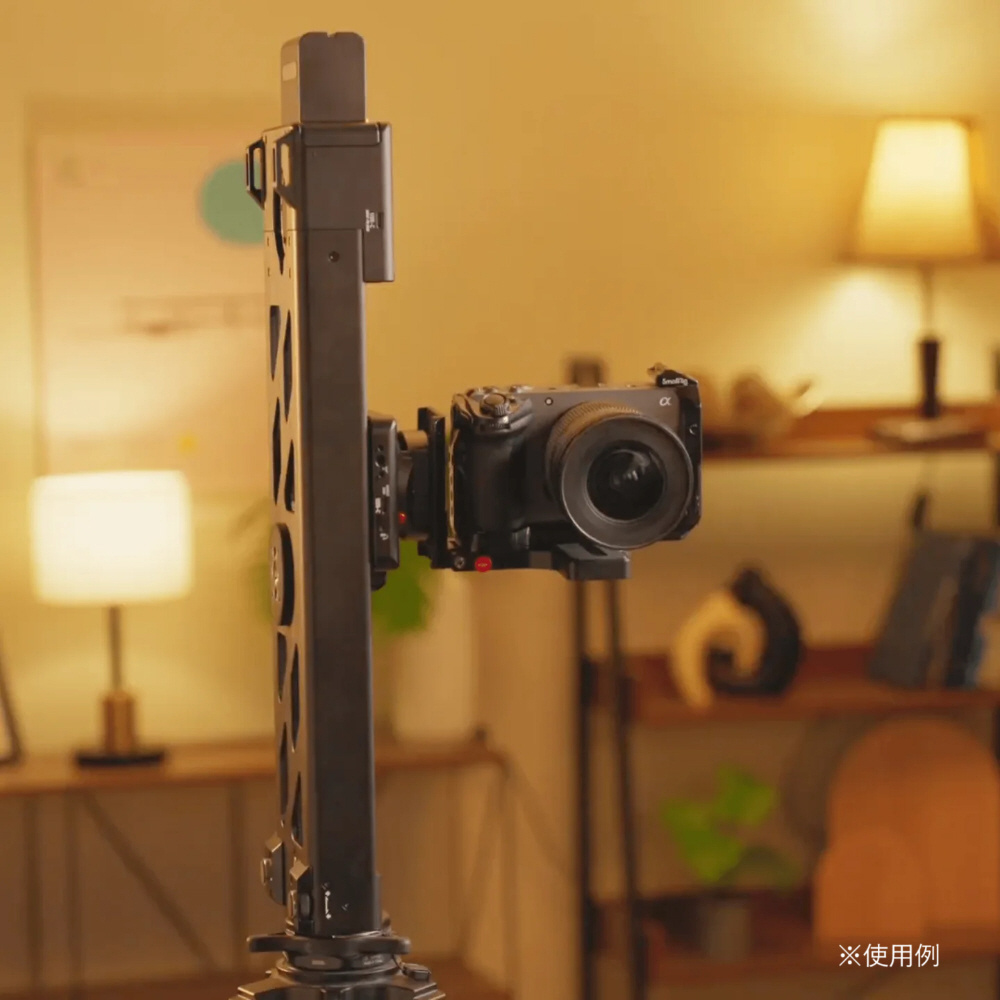 1/4インチ、3/8インチネジでの取り付けに対応、スライダーでの垂直方向の撮影に最適です。収納時は折り畳むことができます。マンフロット等のクイックリリースプレート、取付幅50mmの雲台へも取り付けることができます。