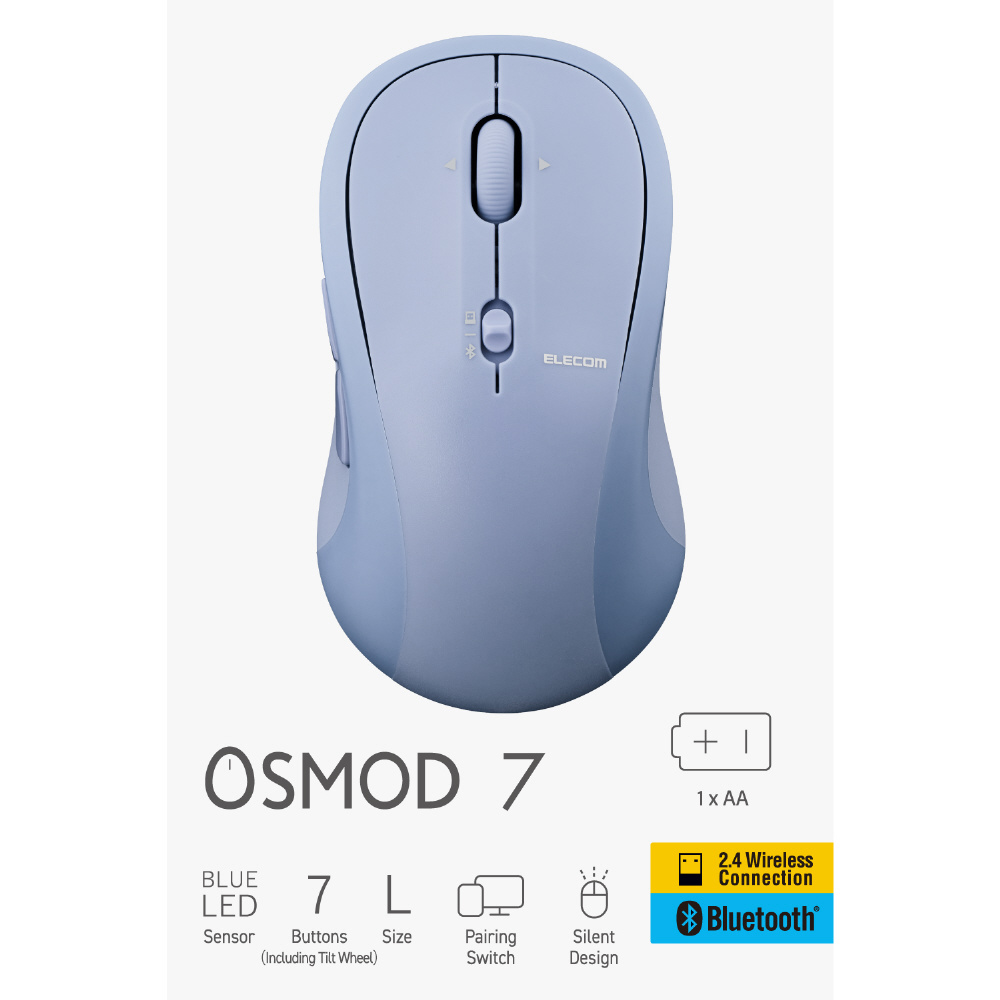 マウス OSMOD 7シリーズ(Chrome/Android/iPadOS/iOS/Mac/Windows11対応) ブルー M-MY40MBSXBU [BlueLED /無線(ワイヤレス) /7ボタン /Bluetooth・USB]