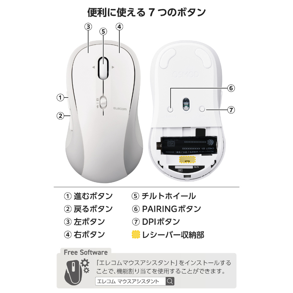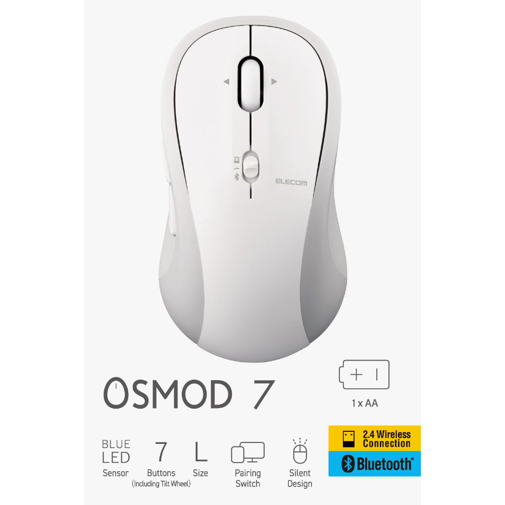 マウス OSMOD 7シリーズ(Chrome/Android/iPadOS/iOS/Mac/Windows11対応) ホワイト M-MY40MBSXWH [BlueLED /無線(ワイヤレス) /7ボタン /Bluetooth・USB]