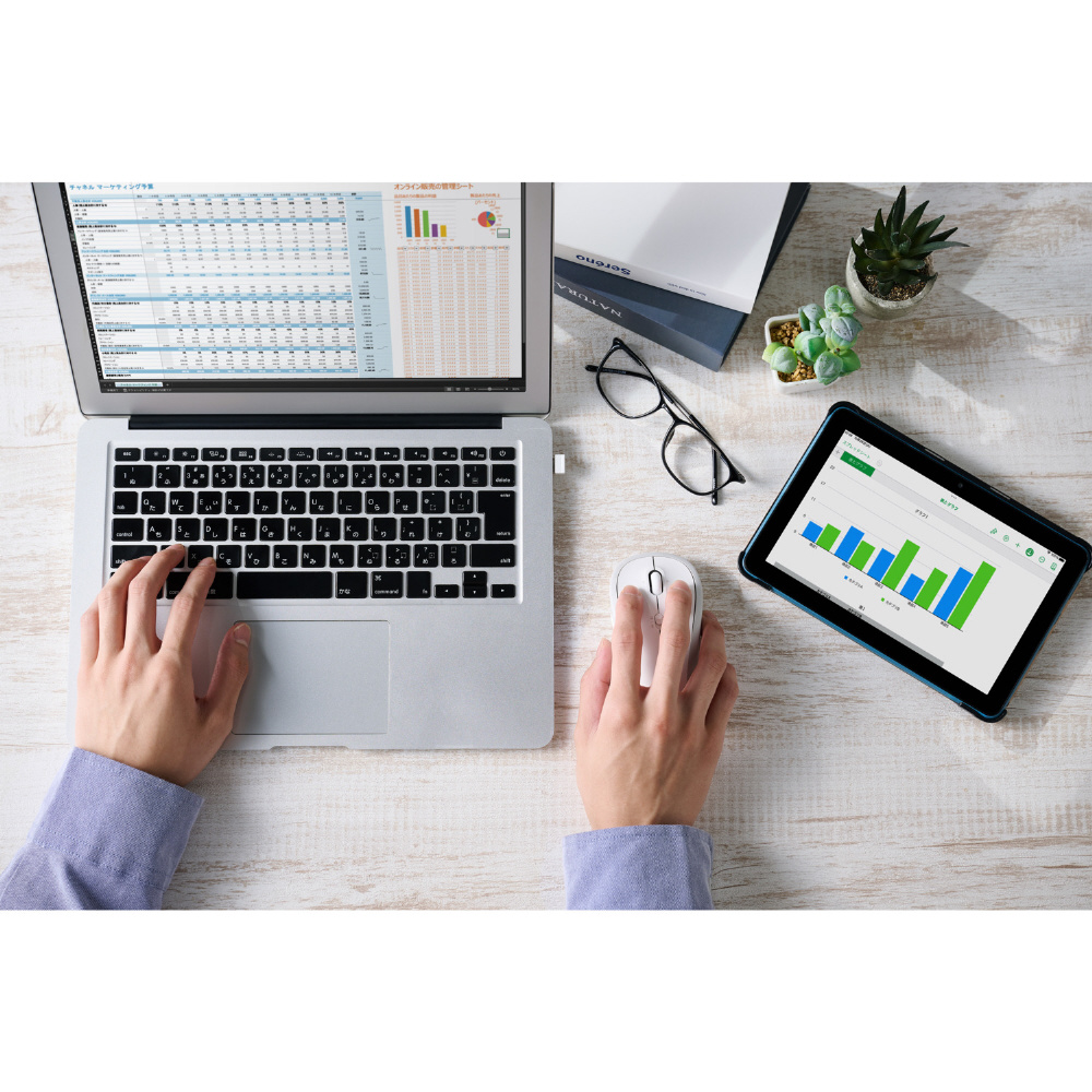 ■スイッチ一つで接続先を簡単に切り替えられるため、家ではパソコン、外ではタブレットなど、複数のデバイスを併用している方におすすめです。
