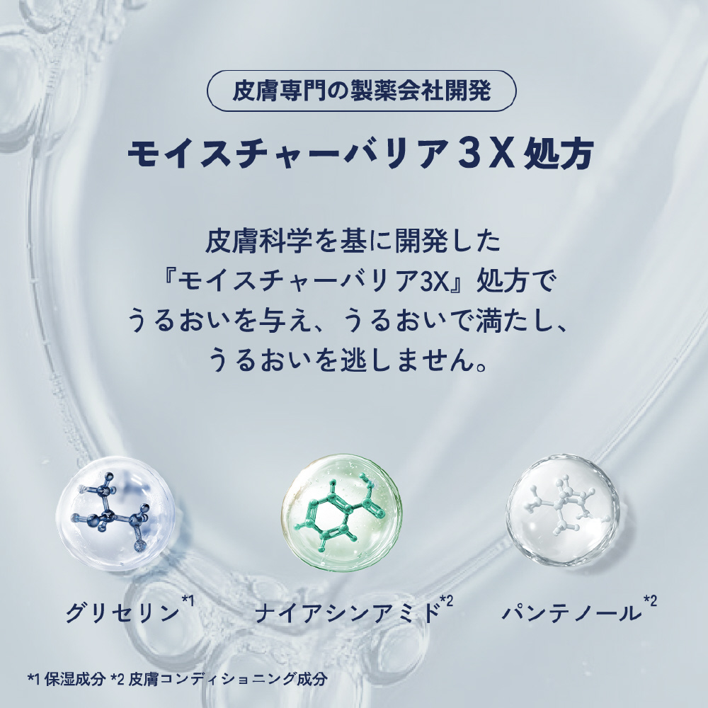 高保湿ヴェールでベタつかず、しっかりうるおい、バリア機能をサポート。