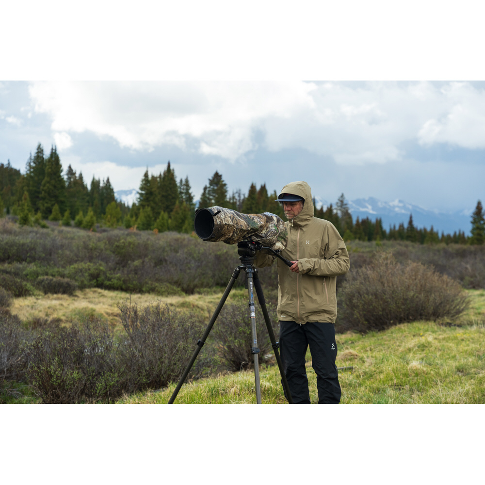 大雨やほこりの多い場所での撮影時に大切なカメラとレンズを守る、コンパクトなレインカバーです。