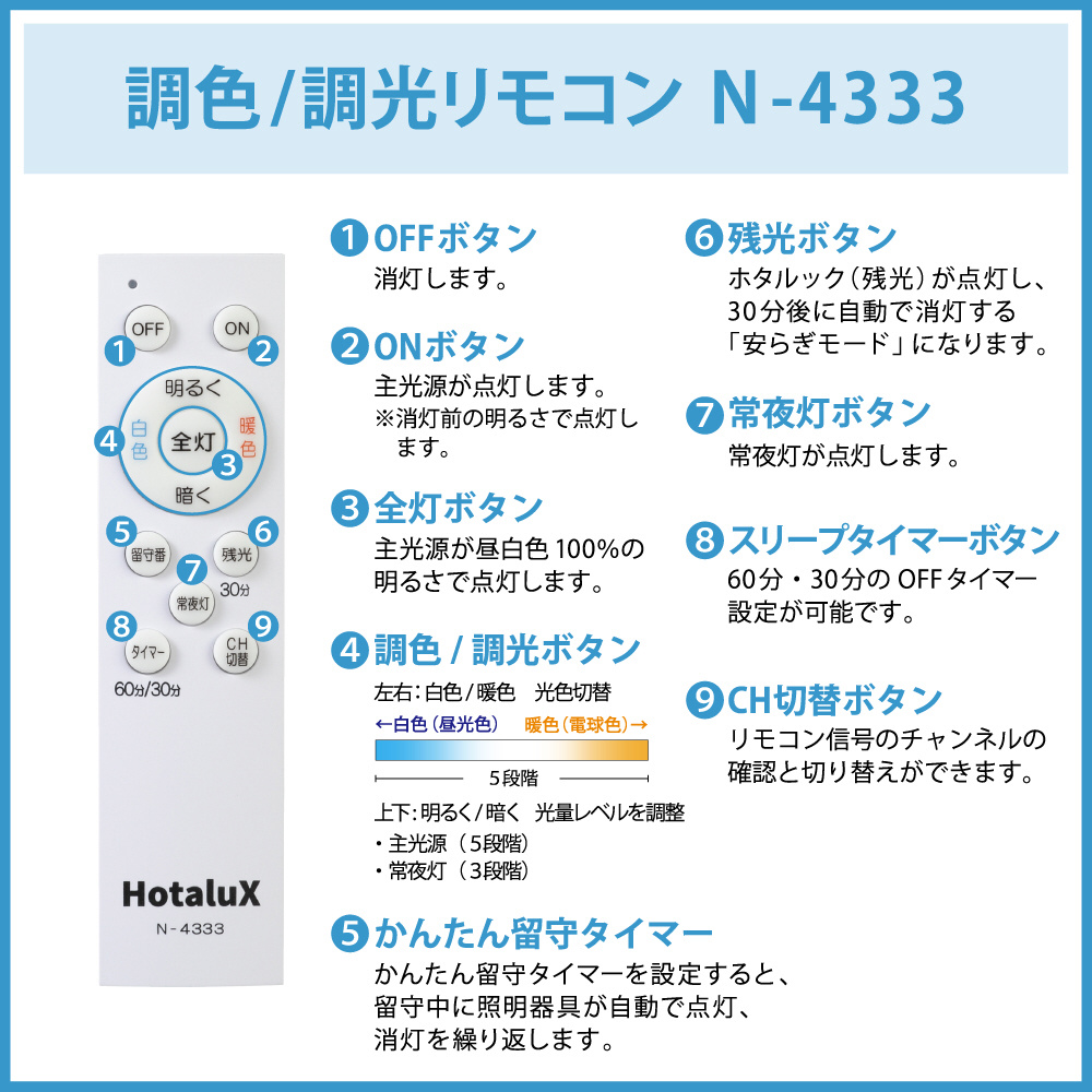やすらぎモード:残光延長機能付き