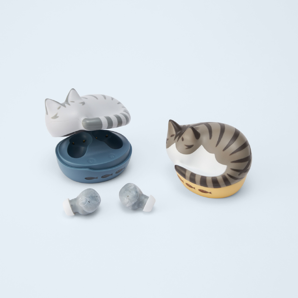 小さく丸くなって眠る猫をモチーフにした完全ワイヤレスイヤホン。