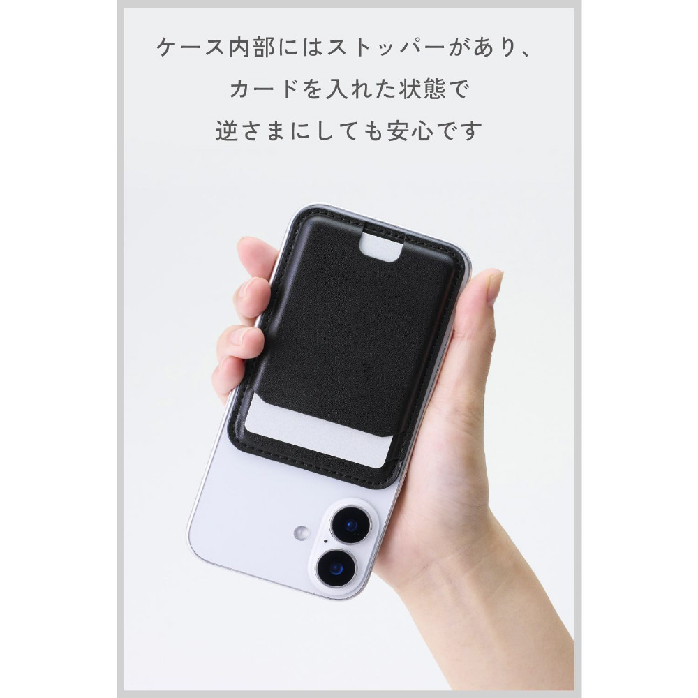 MagSafe カードケース iPhone用 2枚収納 レザー風 薄型 マグネット脱着 オープンポケット スマホ カード入れ MAGKEEP ブラック AMS-MAGCDBK