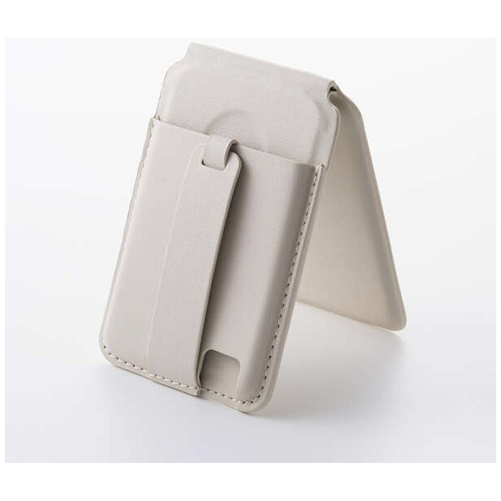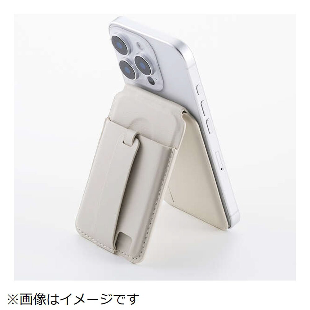 MagSafe カードケース スタンド iPhone用 磁気防止シート付 3枚収納 マット素材 バンド付 MAGKEEP ベージュ AMS-MAGCSBBG