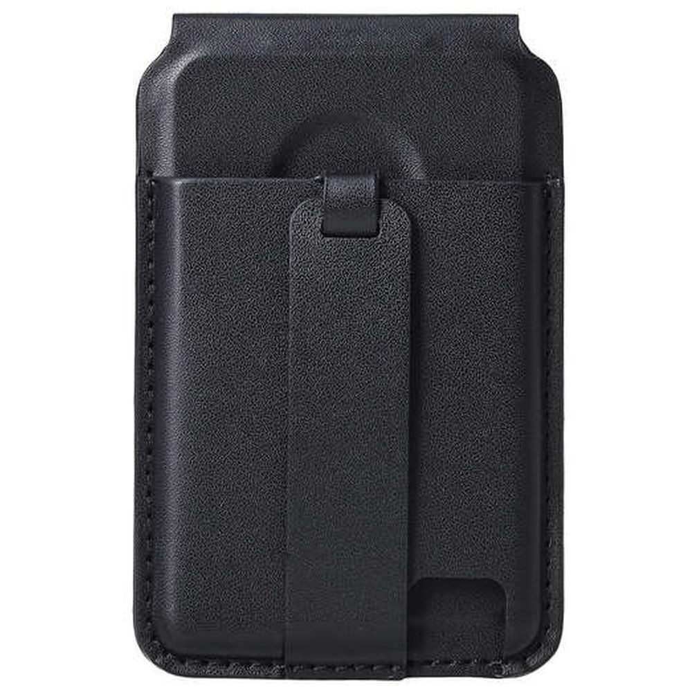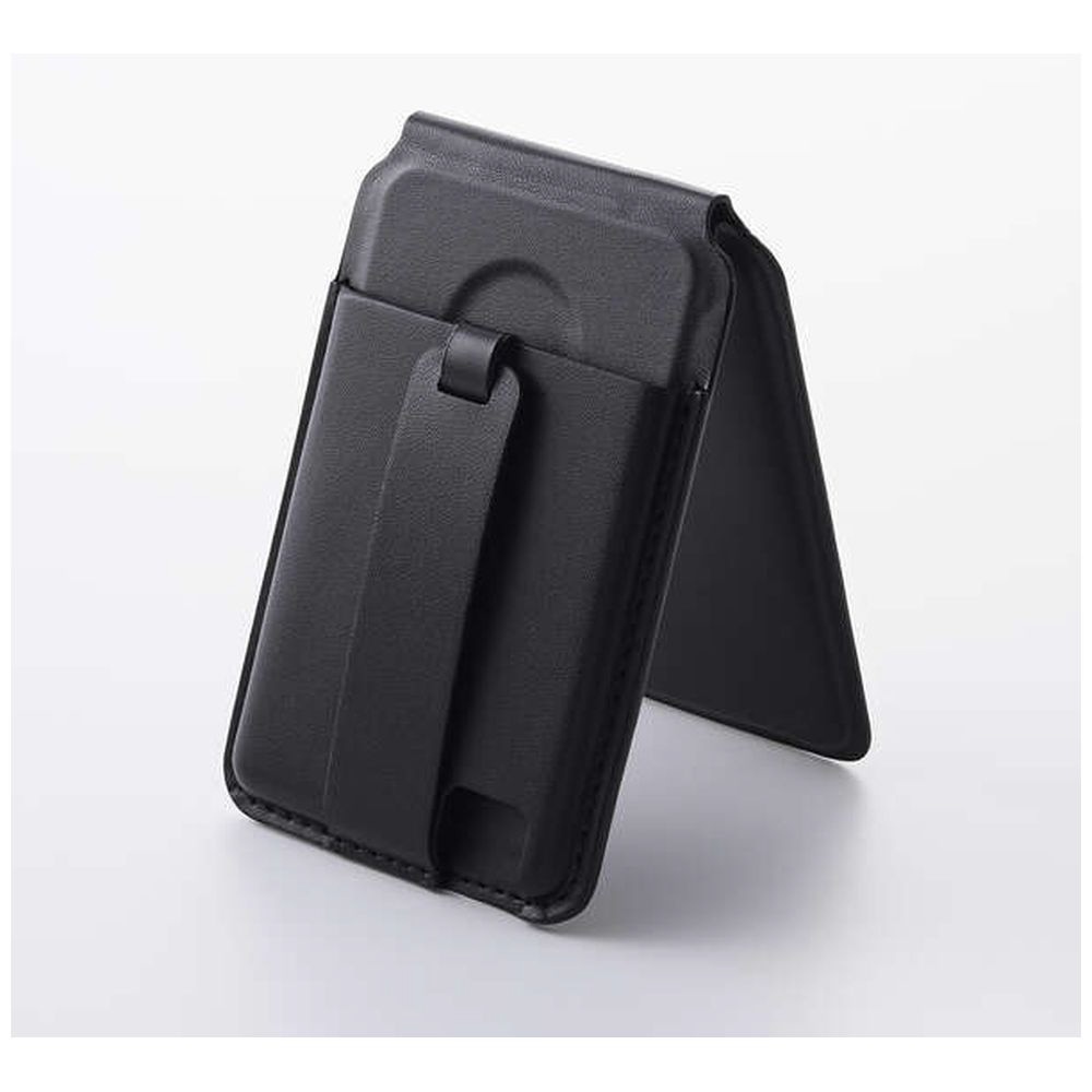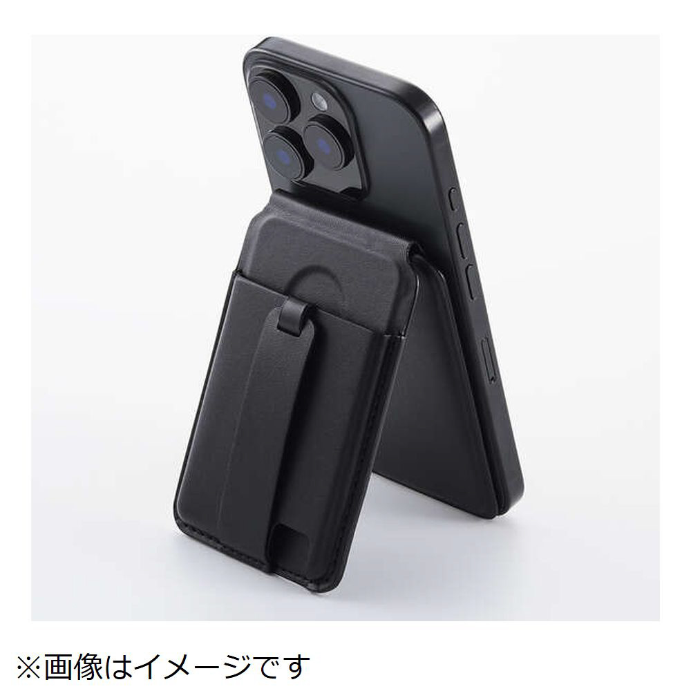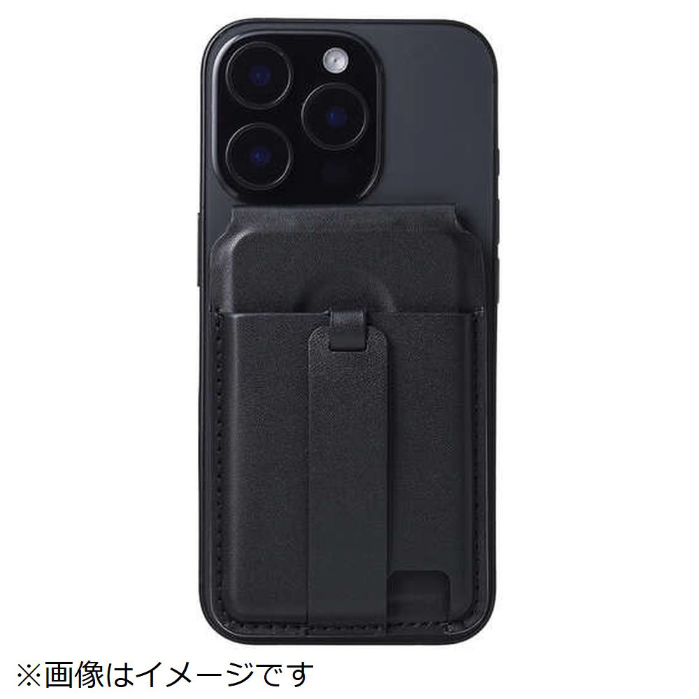 MagSafe カードケース スタンド iPhone用 磁気防止シート付 3枚収納 マット素材 バンド付 MAGKEEP ブラック AMS-MAGCSBBK
