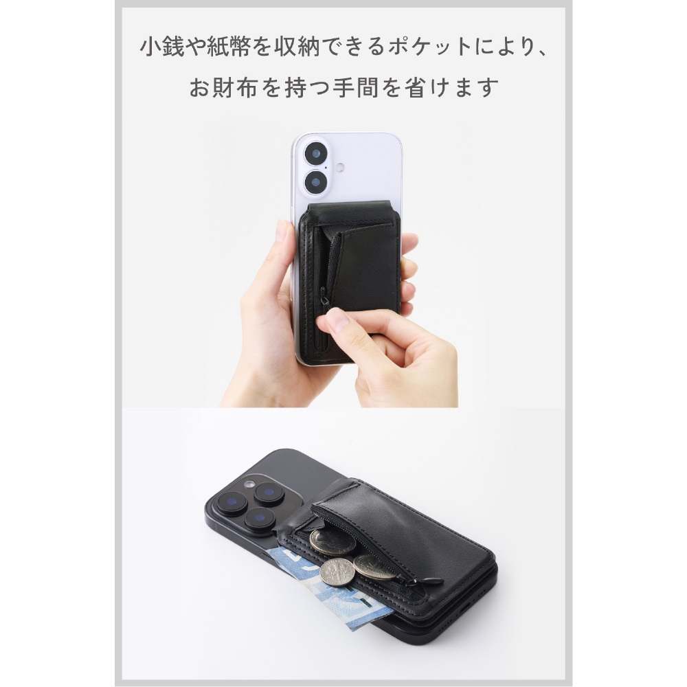 MagSafe カードウォレット スタンド iPhone用 磁気防止シート付 2枚収納+小銭ポケット 財布代用 マット素材 MAGKEEP ブラック AMS-MAGCWSBK