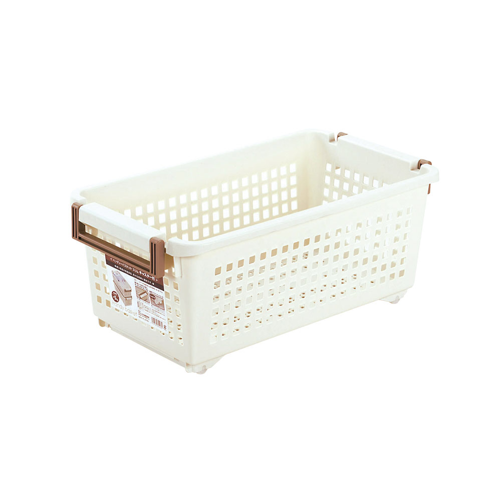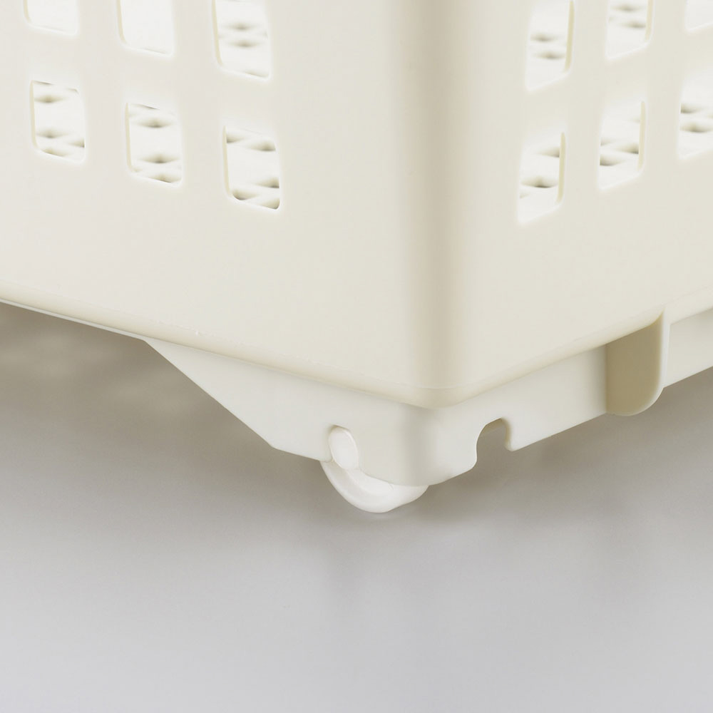 収納バスケット 取っ手付き スリム キャスター付き アイボリー 181098