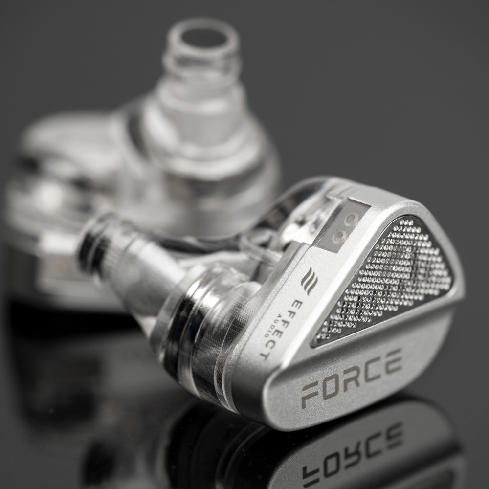 「FORCE」はベリリウムとチタンの振動板を搭載した、デュアルダイナミックドライバー構造で、バランスの取れた高音質を実現します。ケーブルはEFFECT AUDIOとの共同開発で、単結晶銅銀メッキ導体により力強い低域ときらめく高域を再現。独自のオープンバック構造は、不要な振動と歪みを抑え、広々とした音場と高域の伸びを実現。遮音性も高く、音漏れを気にせず使えます。