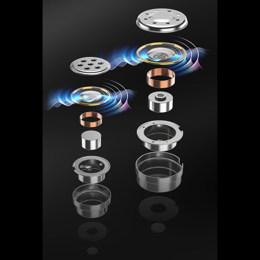 DTM4 Ultraデュアルダイナミックドライバーは、8.2mmのベリリウム振動板が自然で繊細な中高域を、10mmのチタン振動板が歪みの少ないタイトでパワフルな低域を再現し、バランスの取れた高音質を実現します。