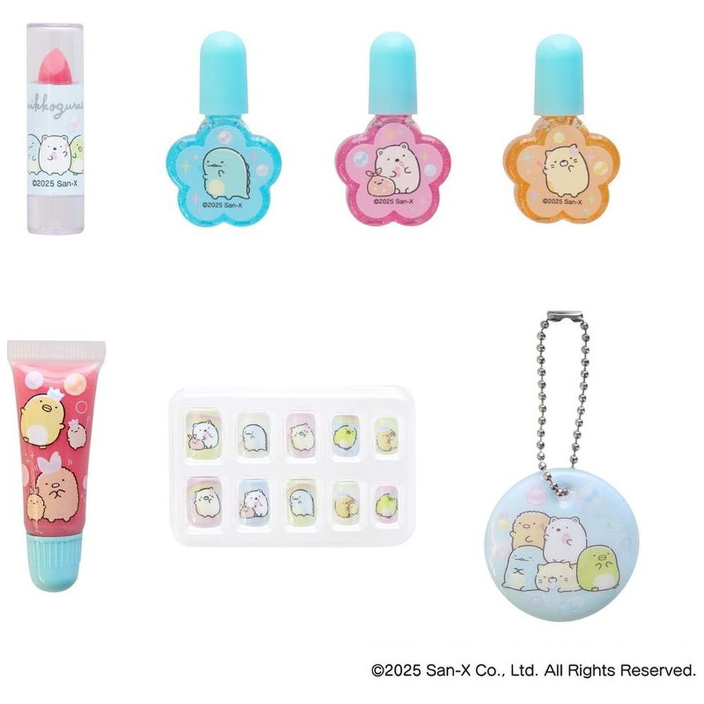 「すみっコぐらし」のバックパックの中には、キラキラのラメが入ったネイルカラーやリップグロス、リップスティック、