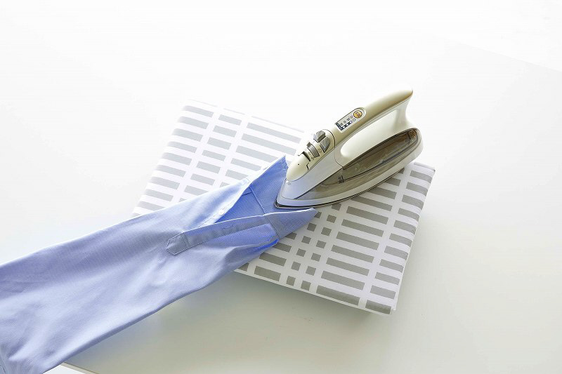 衣類をアイロン台の下に滑り込ませられるので、立体的にアイロン掛けができます。