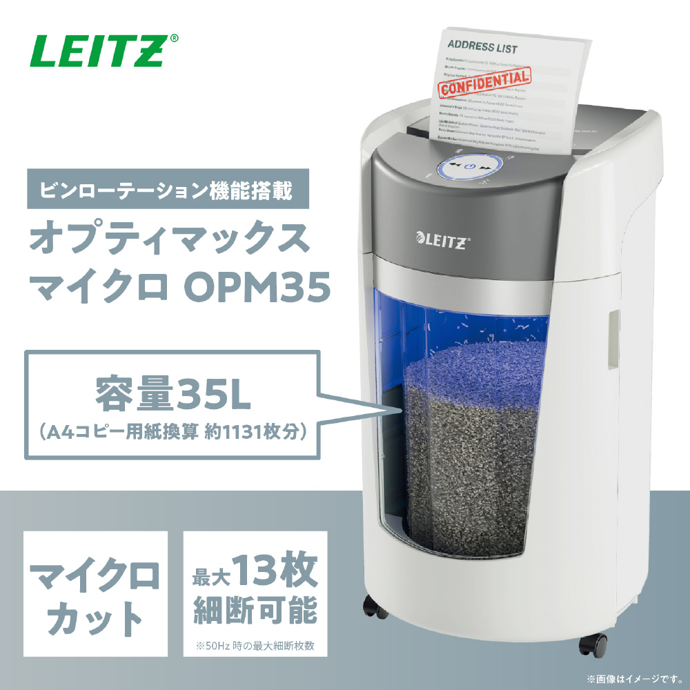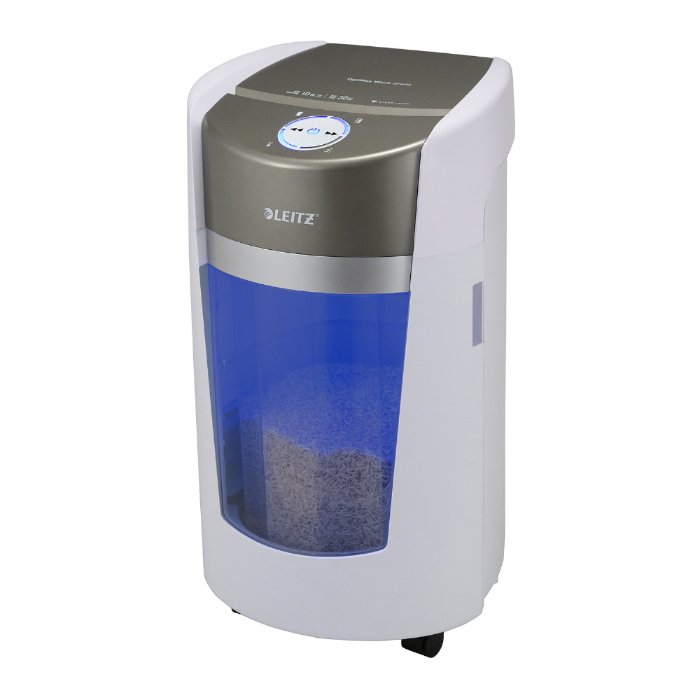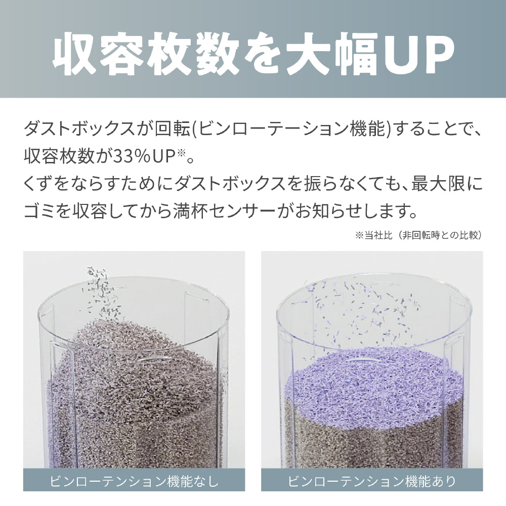 自動くずならし機能搭載のNEWスタイルシュレッダ。ダストボックスが回転することで、収容できる用紙の枚数がUP。細断時にダストボックスがライトアップするユニークな機能。