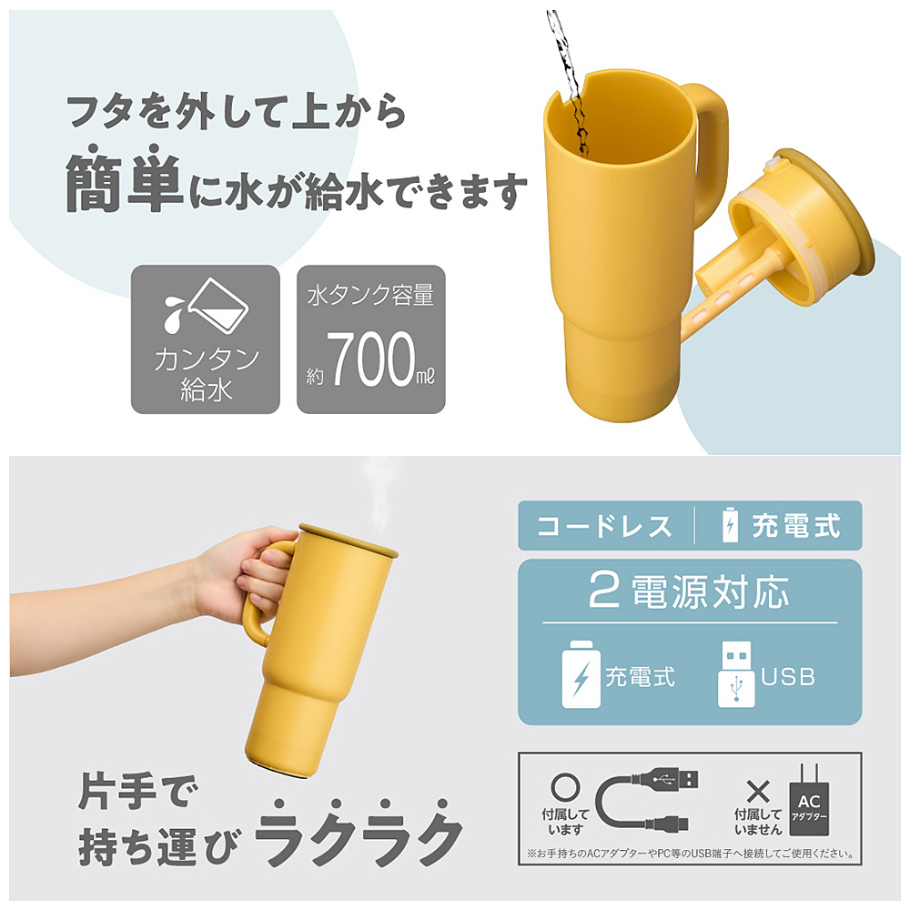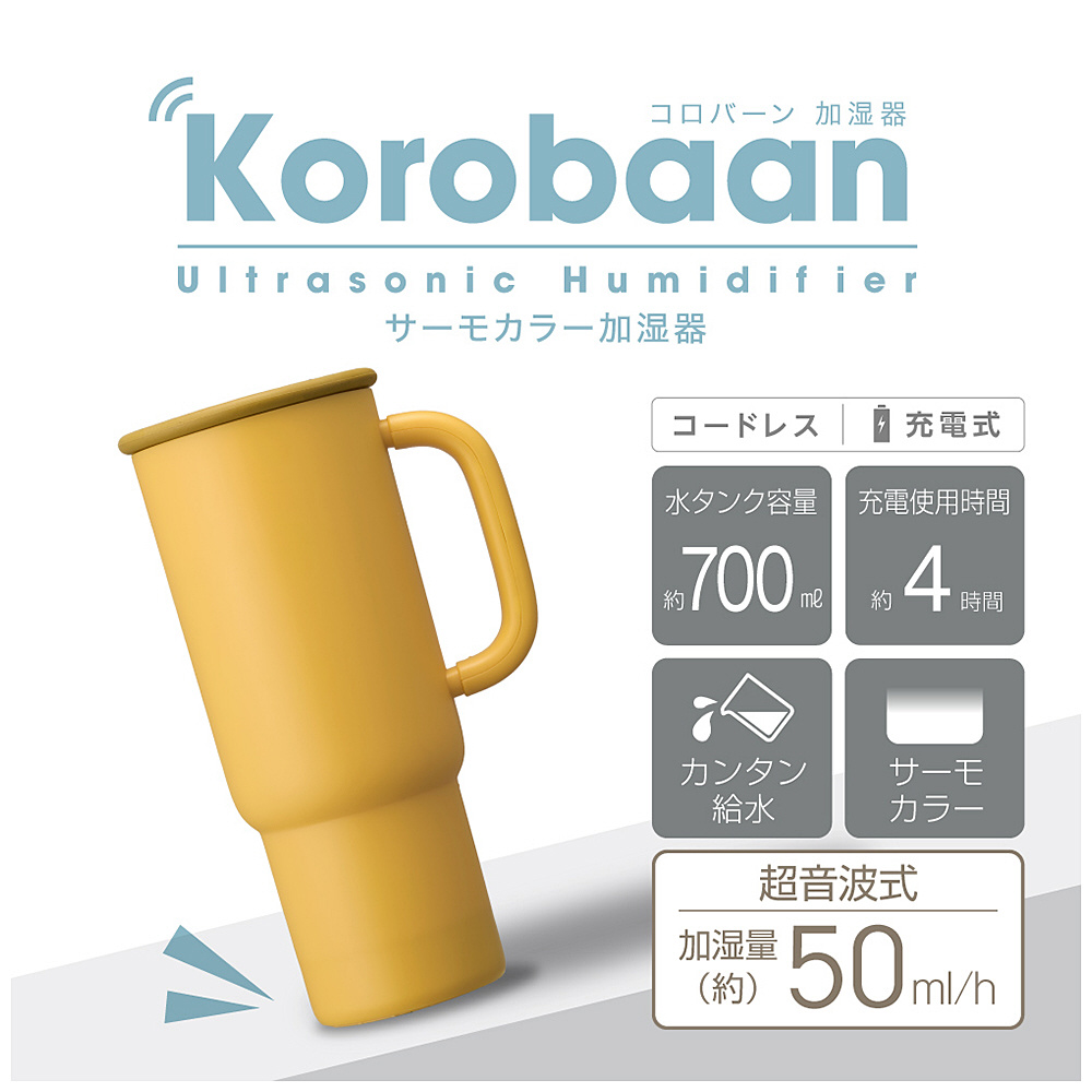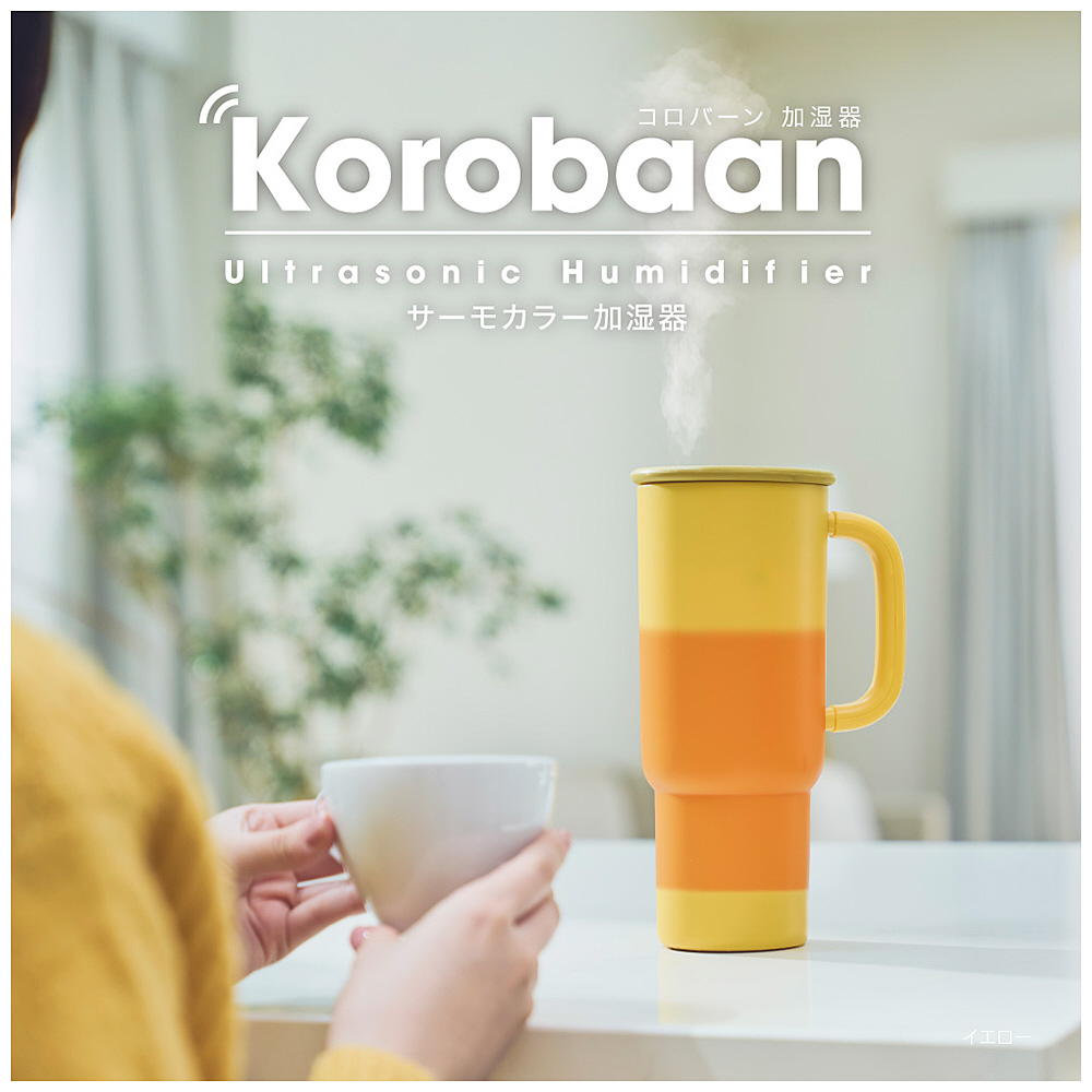 取っ手付きタンブラー型デザインで、冷たい水を入れると本体カラーが変化する「Korobaan(コロバーン) サーモカラー加湿器」