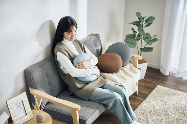内部には小さなビーズがぎっしりと詰まっており、身体のカーブにフィットしてじんわりとしたぬくもりを届けます