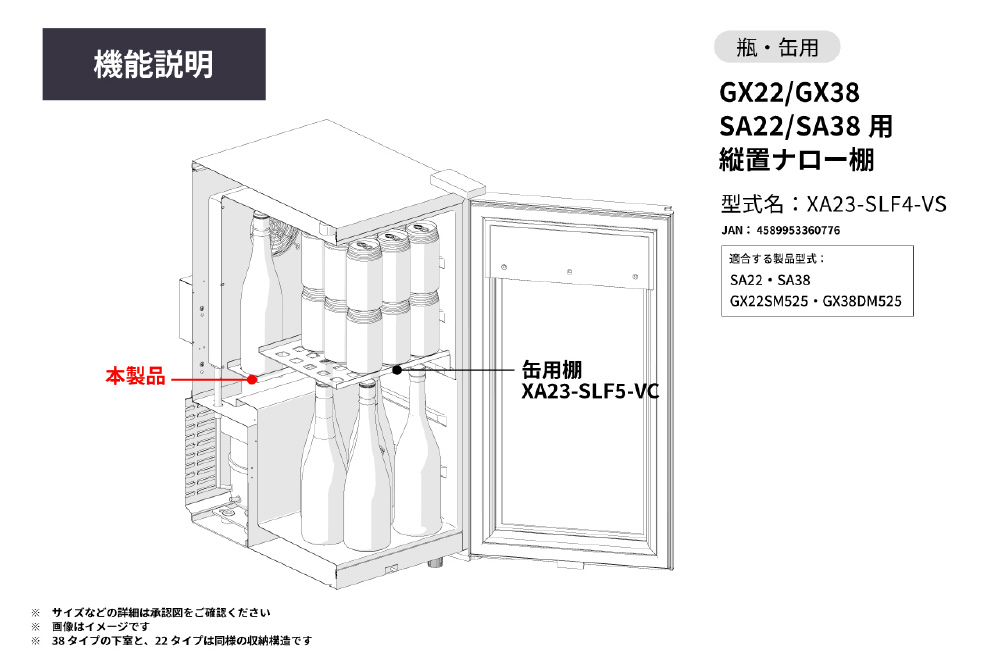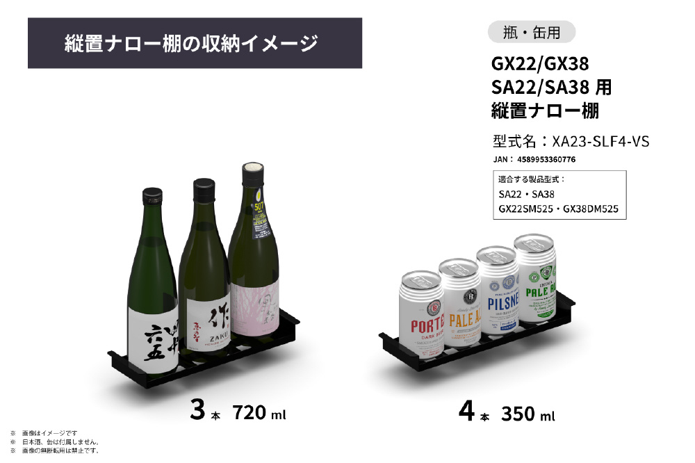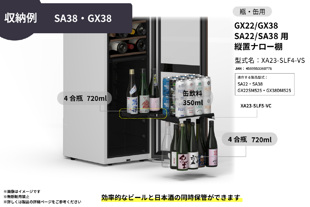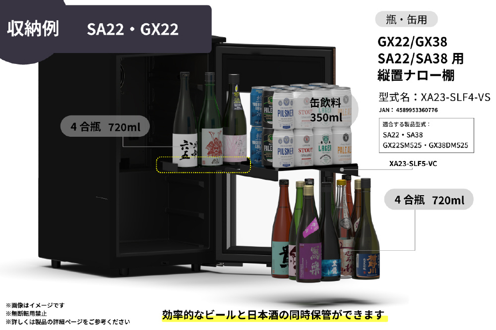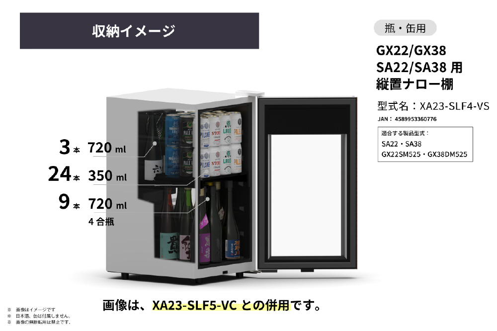 缶用棚【XA23-SLF5-VC】や、ステップ棚【XA23-SLF6-ST】との併用で、より効率的にご収納いただけます。