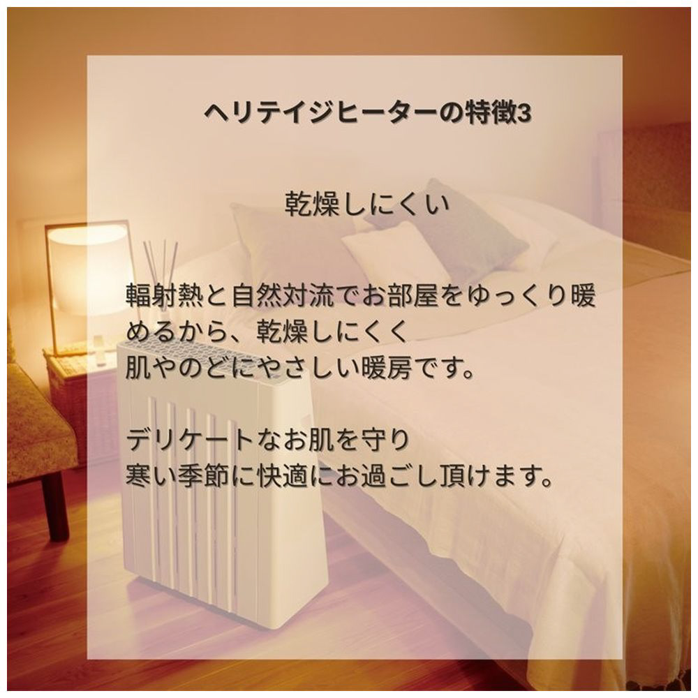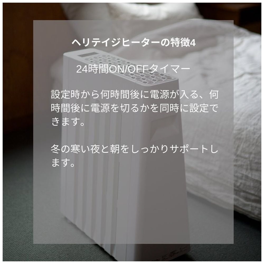従来のオイルヒーターに比べ、立上りの温度上昇が2倍の速さ。本体重量10.5kgと、従来の同等機種に比べ30%以上の軽量化。