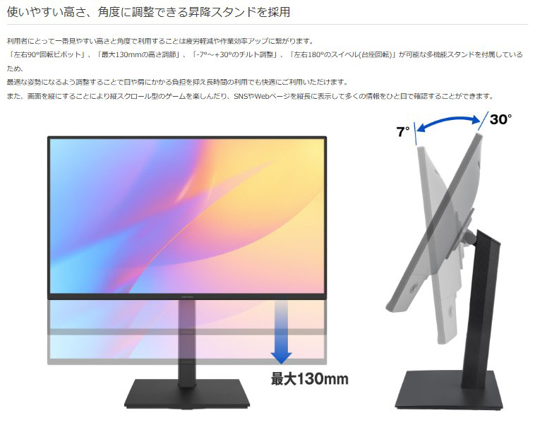 「23.8型ワイド フルHD対応 LED液晶ディスプレイ 昇降スタンド」