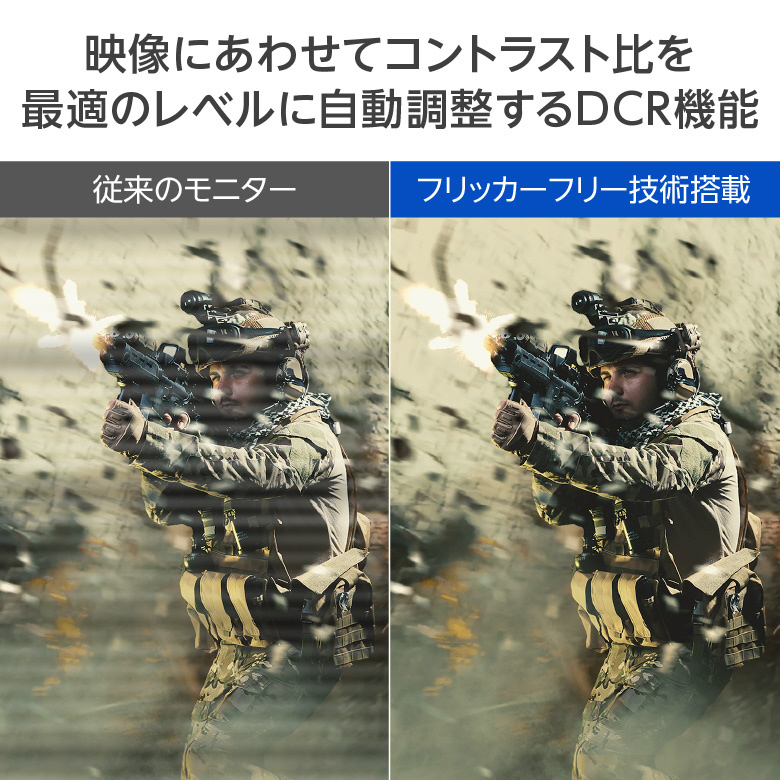 画面のちらつきを無くすフリッカーフリー技術により、目の疲れを低減します。